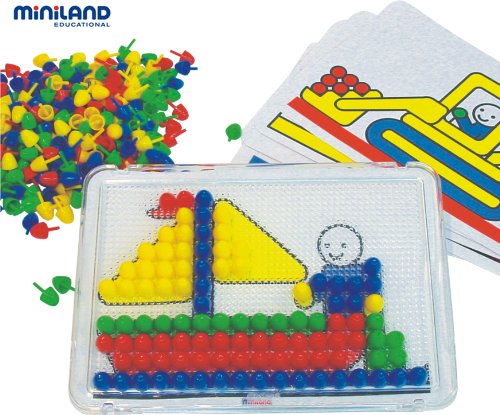 Miniland 31819 - Mosaik Steckbrett 15 mm (Steckbrett+6 Vorlagen+300 Stecker)